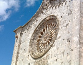 stile romanico- gotico, è dominata dal rosone centrale raffigurante,