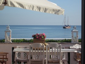 to reach the main tourist destinations of Puglia.This villa enjoys a privileged position that makes it look like a big boat, and there is no part of the house from which you can't see: sea, sky, boats and seagulls. Sunsets and sunrises will instill you an unforgettable serenity. A chromatic variation will mark the hours of the day transmitting you a great inner balance and peace almost forgotten. The roar of the waves will lull your dreams and when you wake up, from the large veranda, you'll admire the return of the boats after a long night of fishing.