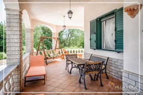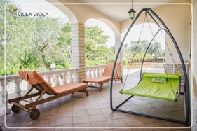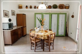 In a beautiful bucolic Alto Salento, surrounded by olive groves and typical fruit trees that stretch for over 3000 square meters, stands Villa Viola. At only 6 km from the Natural Reserve of Torre Guaceto and ten minutes from the beautiful beaches of Santa Sabina, and Pantanagianni Specchiolla, Villa Viola is the ideal destination for those who want to fully enjoy the charm of the countryside without losing the pleasure of the fresh sea air. Simplicity, elegance and style will welcome you in a villa of 100 square meters, consisting of four bedrooms, two bathrooms, a large living room and a gracious dining room. The house offers two bedrooms, one double and one single, comfortable and well furnished. In case of need there is also sofa-bed that can accommodate an extra two people. The spacious living room of the villa offers a large sitting area, consisting of two comfortable sofas and a beautiful fireplace, where you can sip a glass of wine on cold winter evenings. From the living room you can access the cosy dining room and a nice kitchen, with crockery and comfort. The house has two comfortable bathrooms, the first and the second bath with shower. In summertime Villa Viola becomes a peaceful and favourite place of rest, where you can enjoy the sunny countryside, tasting fruits and perfumes. On the two sides of the house there is also a beautiful space ideal for business lunches and dinners suggestive. The fresh and bright spring days you can lie on the lawn of 500 square meters, or read a book on the swing, sheltered from the large veranda of 80 square meters. The side staircase takes you to the terrace. and throughout the surrounding countryside. The large square in front of the villa can accommodate 3 cars.